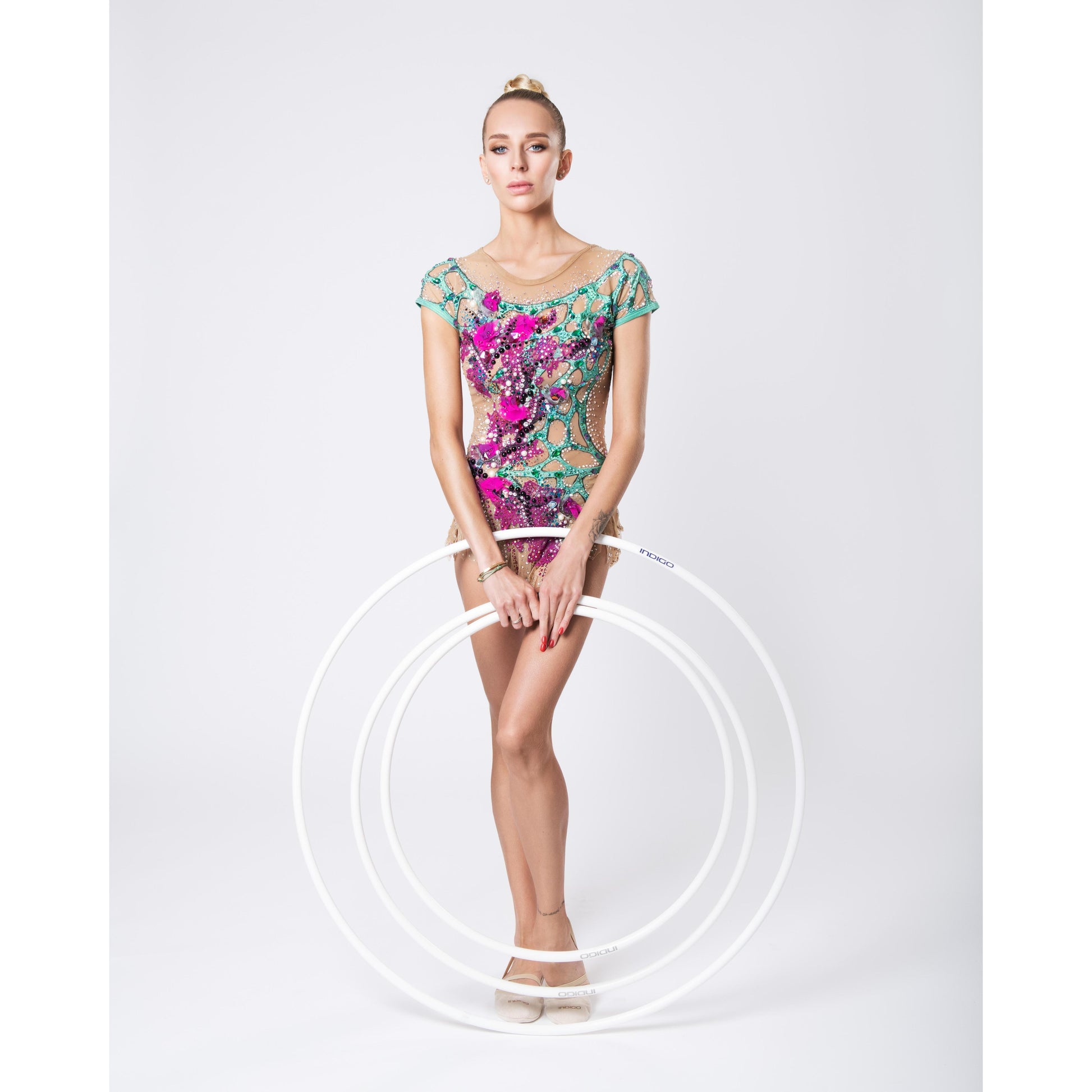 El aro de plástico de gimnasia (análogo de Sasaki) es duradero y resistente. Adecuado tanto para principiantes como para deportistas experimentados. Al comprar un aro, es importante tener en cuenta la altura de la gimnasta. El tamaño ideal es desde el suelo hasta el hueso de la cadera (esto es 2 cm por debajo del ombligo). El aro se presenta en color blanco, para hacerlo más brillante, puedes utilizar los rollos autoadhesivos que ofrecemos en nuestra tienda.
